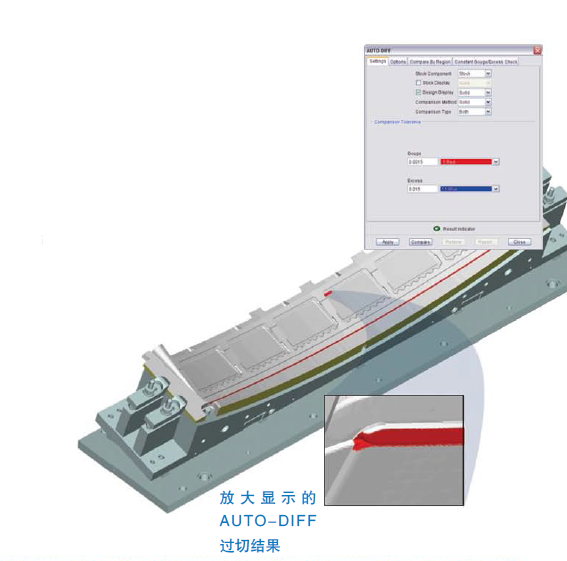 AUTO-DIFF以設計(jì)模型和(hé)VERICUT的“切削”模型做(zuò)比較,讓您能查出過切和(hé)殘餘材料。