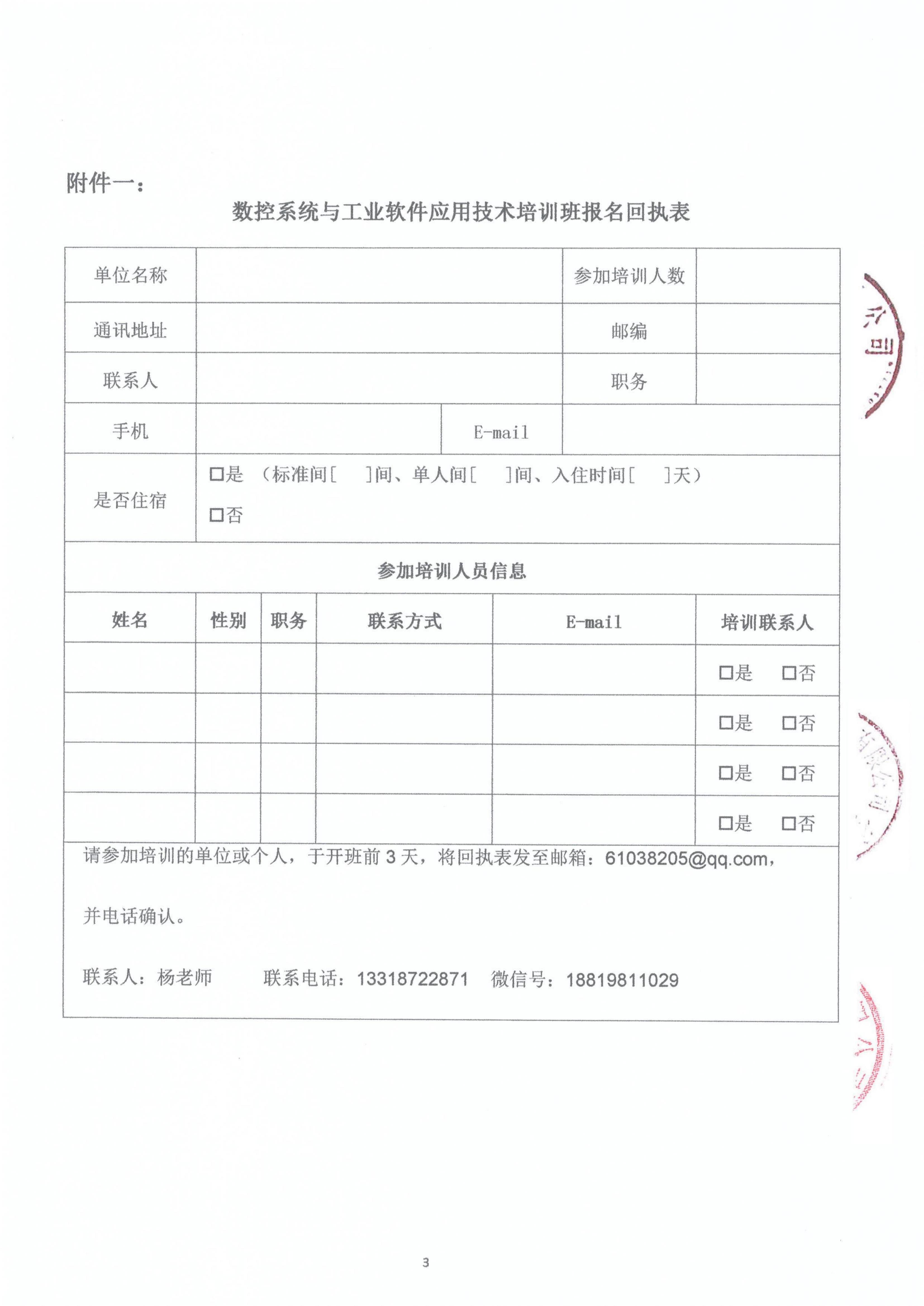 請(qǐng)參加培訓的單位或個(gè)人(rén)填寫“報名回執表(附件一)”,并于開(kāi)班前3天将“報名回執表”發至以下聯系人(rén)郵箱: