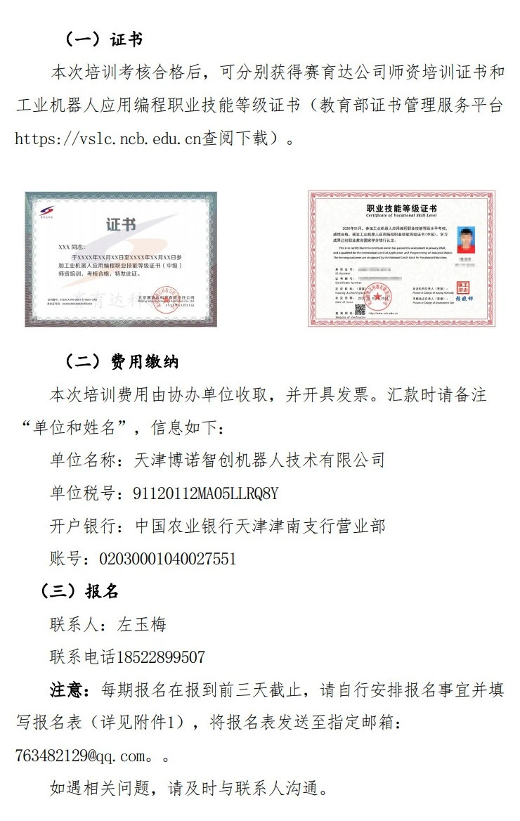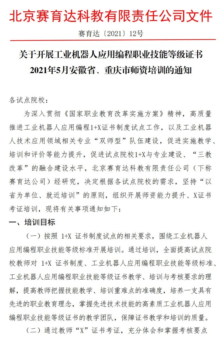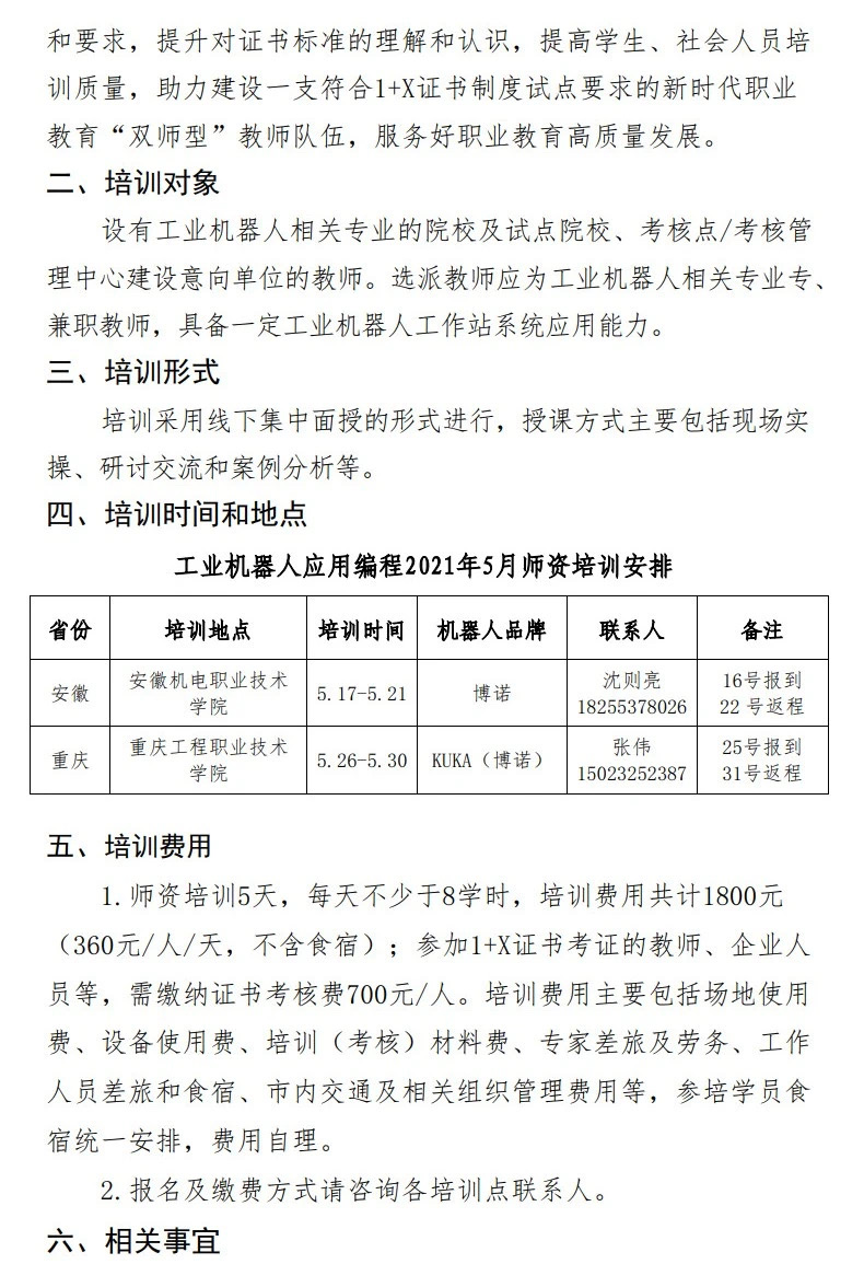 【通(tōng)知】關于開(kāi)展工業機器(qì)人(rén)應用編程職業技(jì)能等級證書(shū)2021年5月師(shī)資培訓的通(tōng)知
